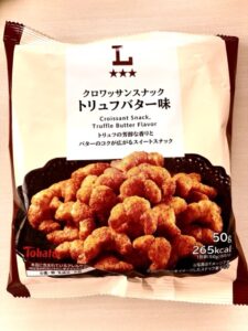 トリュフの芳醇な香りとバターのコクが広がるスイートスナック。袋を開けた瞬間にトリュフの良い香りと共にクロワッサン型のかわいい見た目が晩酌タイムをキュンとさせます。