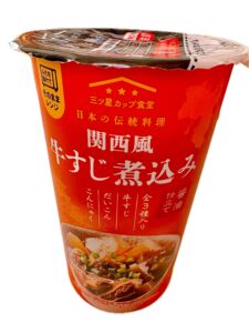 トーヨービバレッジ【三ツ星カップ食堂】シリーズ「関西風牛すじ煮込み」かつお節の風味香る醤油ベースのつゆにしょうがと牛すじのうま味が合わさった贅沢な味わいが特徴の一品です!牛すじは柔らかく大根、こんにゃくまで味がしみしみ。芋焼酎×つゆ割りで飲み干したいくらいの美味しさです!